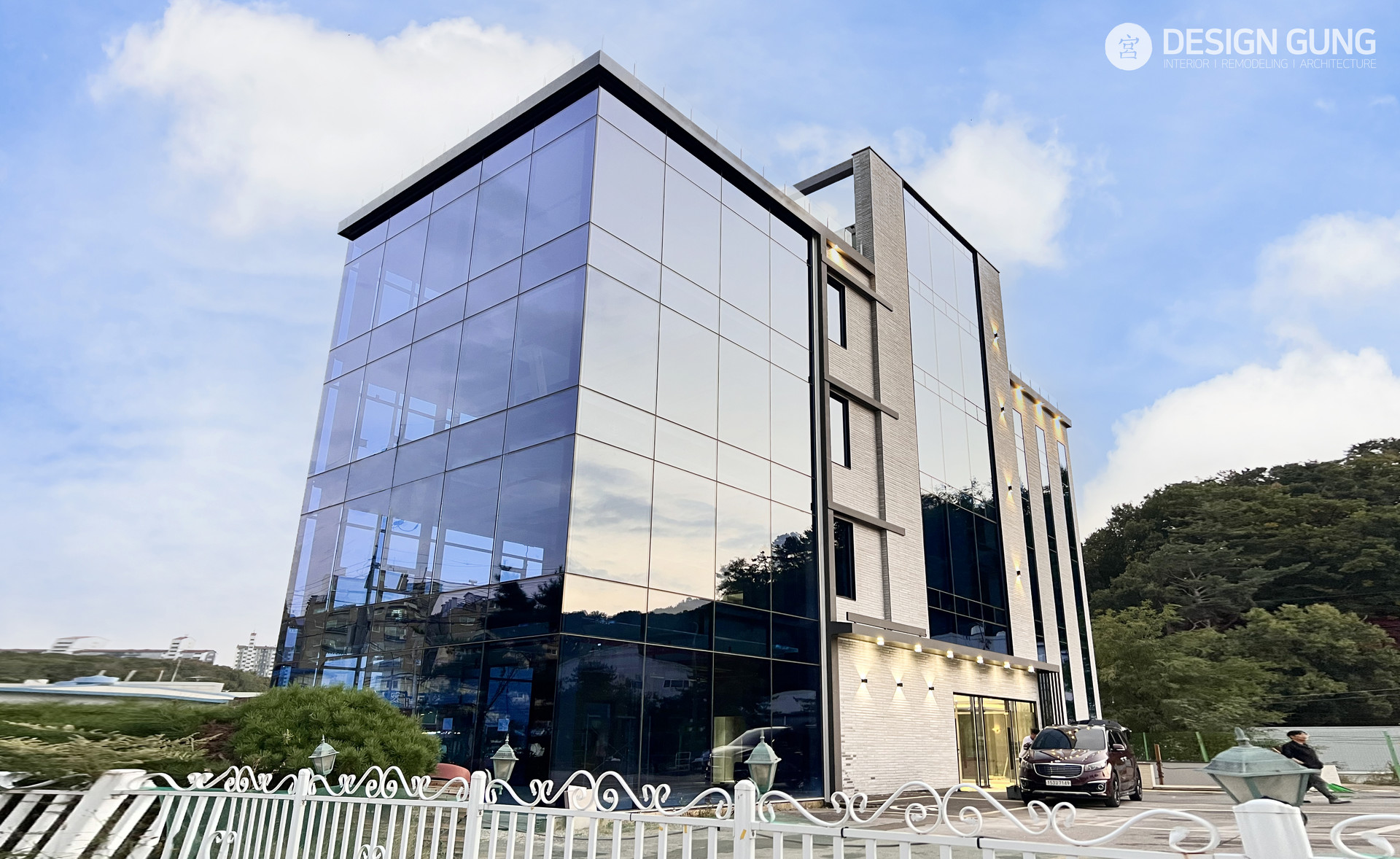 이번 프로젝트의 핵심은 단순했던 구조에서 탈피하기 위해 외관의 형태적인 모습에 큰 변화를 주는 것이었습니다. 근린생활시설은 가장 중요한 것이 "사람들의 시선을 끌 것"입니다. 이번에 공사를 진행하게된 건물은 위치나 규모 등 좋은 조건을 많이 갖고 있었지만 눈에 띄지 않는 특징 때문에 그 조건들을 활용하지 못하고 있었습니다. 따라서 디자인궁은 우선 형태적으로 웅장함을 주기 위해 파사드에 해당하는 부분의 높이를 높여 그 규모가 더 커 보이도록 설계 및 시공을 진행했습니다.